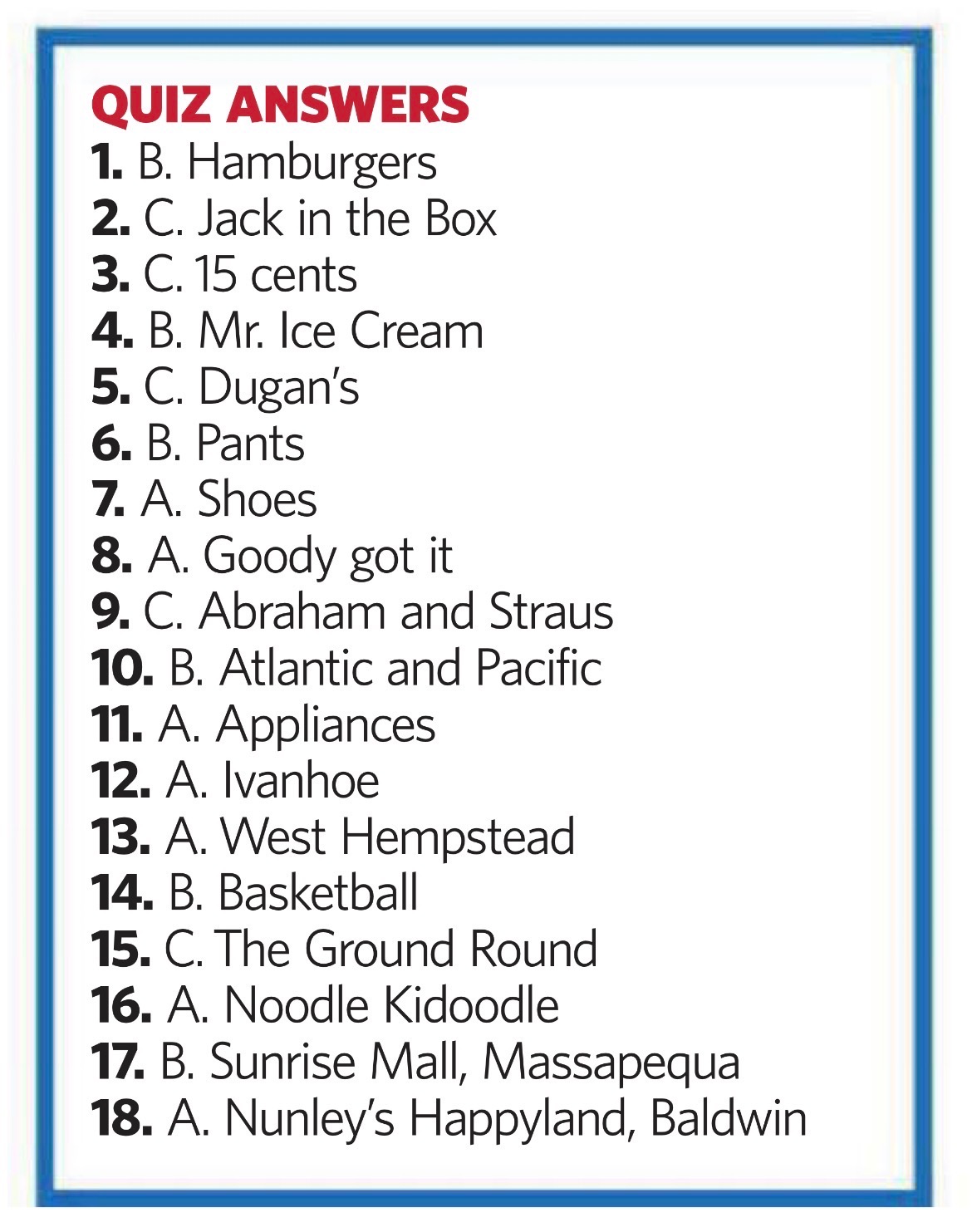 Newsday - L.I. memories quiz - answers.