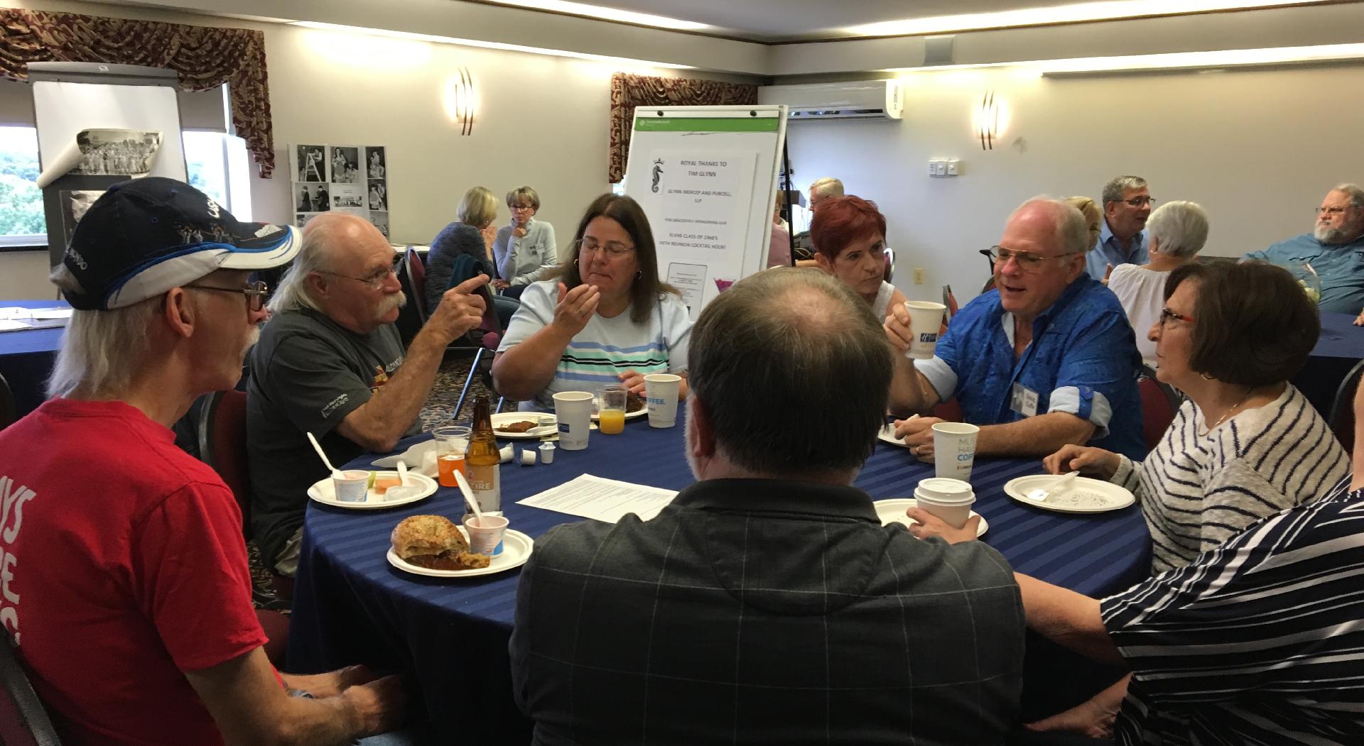 Adrienne/Doug Cuffe, Craig Novak (rear), back of Linda Parnell's head (rear), Anne Hanrahan, George Burgess (rear).